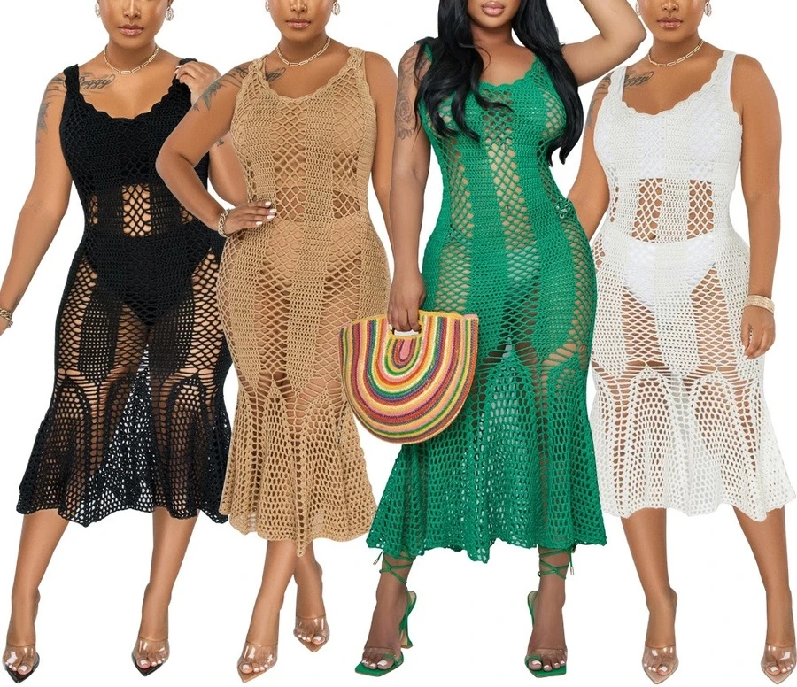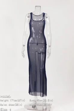 Sexy Slight stretch Solid Color Mesh See-through Sleeveless Maxi Dress Wholesale Sexy Dresses