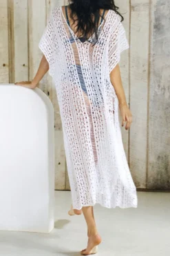 New Blue And White Stripe Knitted Hollow Sexy Beach Dress Cover-ups (without Swimwear) Wholesale