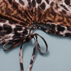 Autumn leopard batch printing hollow out stretch one shoulder new stylish casual maxi dress