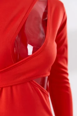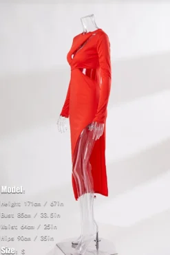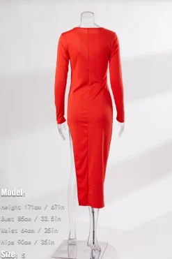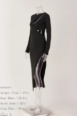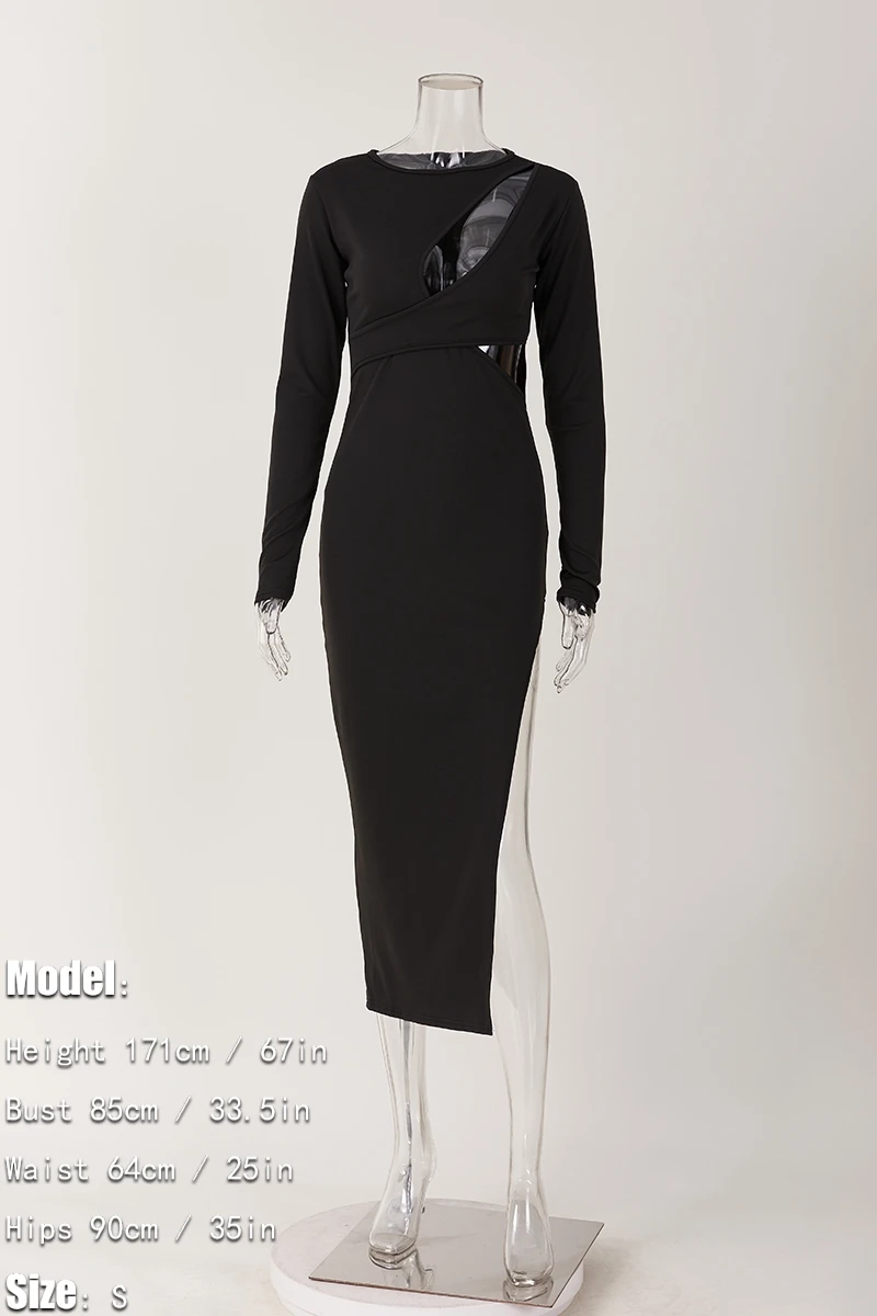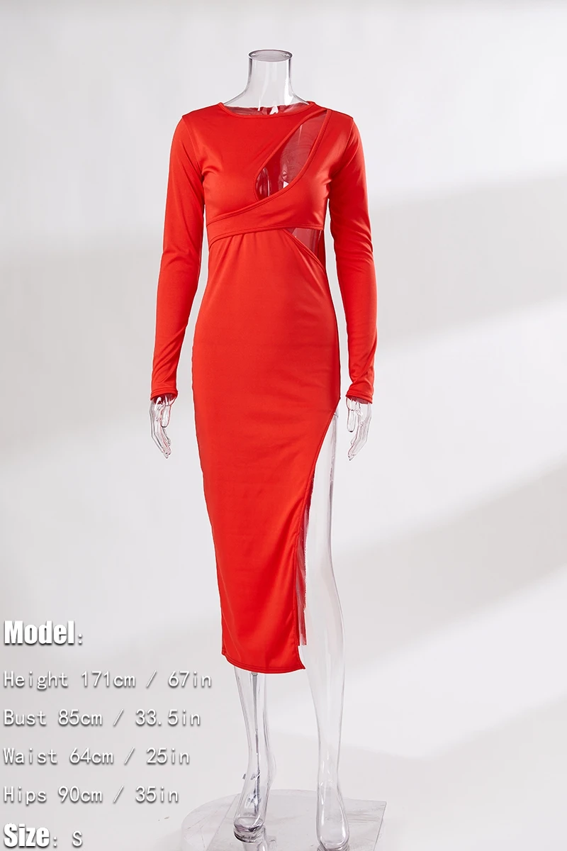 Autumn new stylish 5 colors solid color crew neck long sleeve hollow stretch slit plus size sexy midi dress