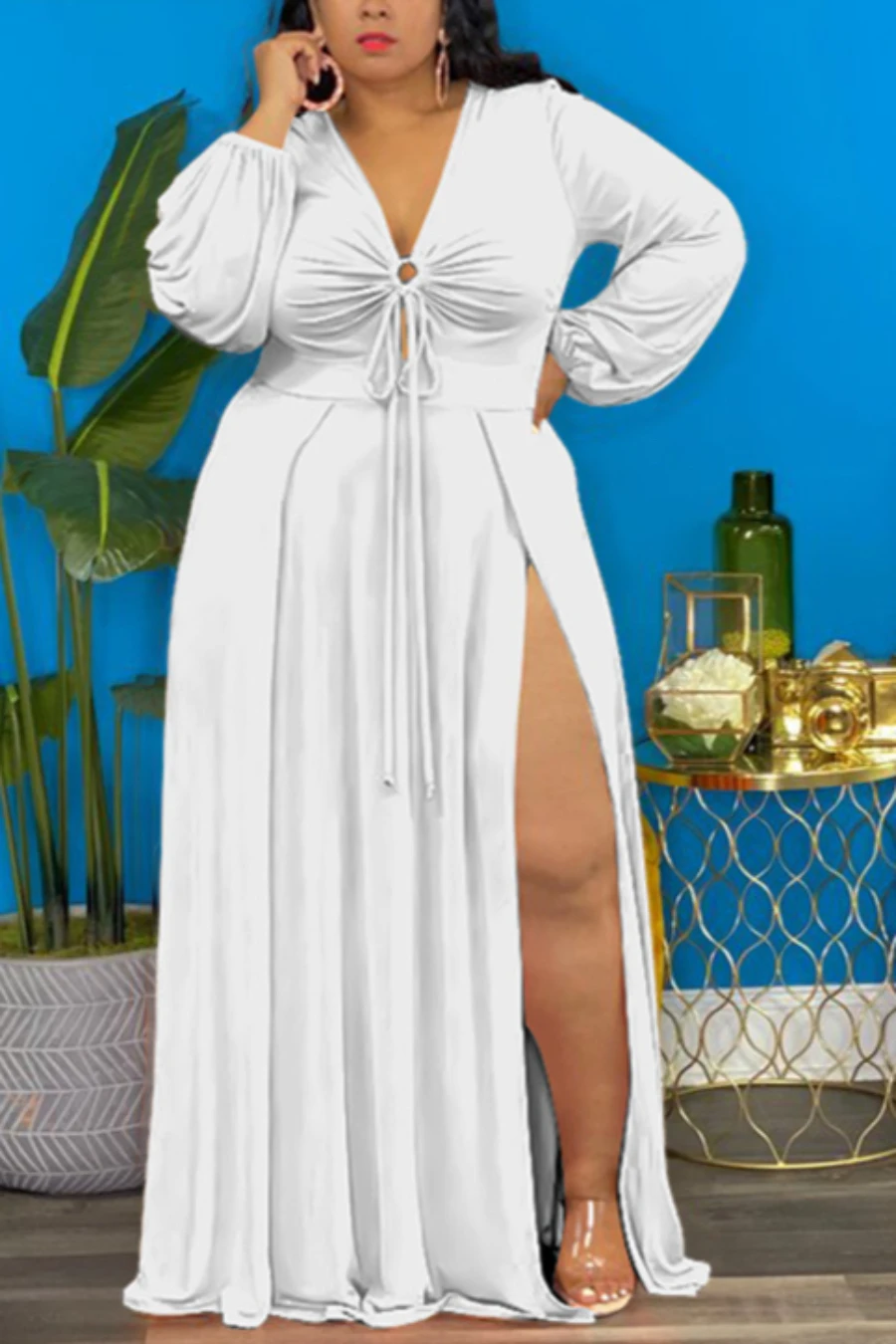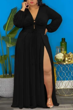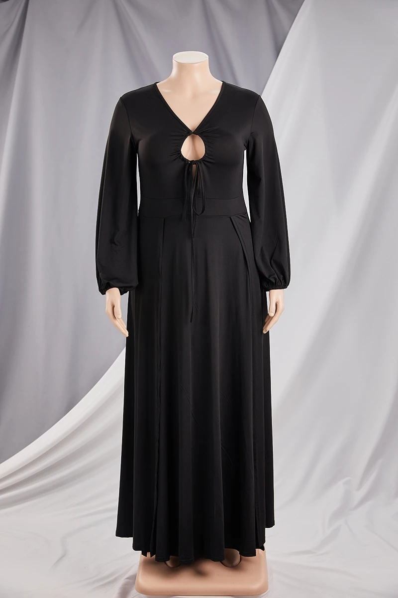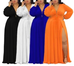 Autumn solid color 4 colors plus size L-4XL new stylish stretch hollow out high slit maxi dress