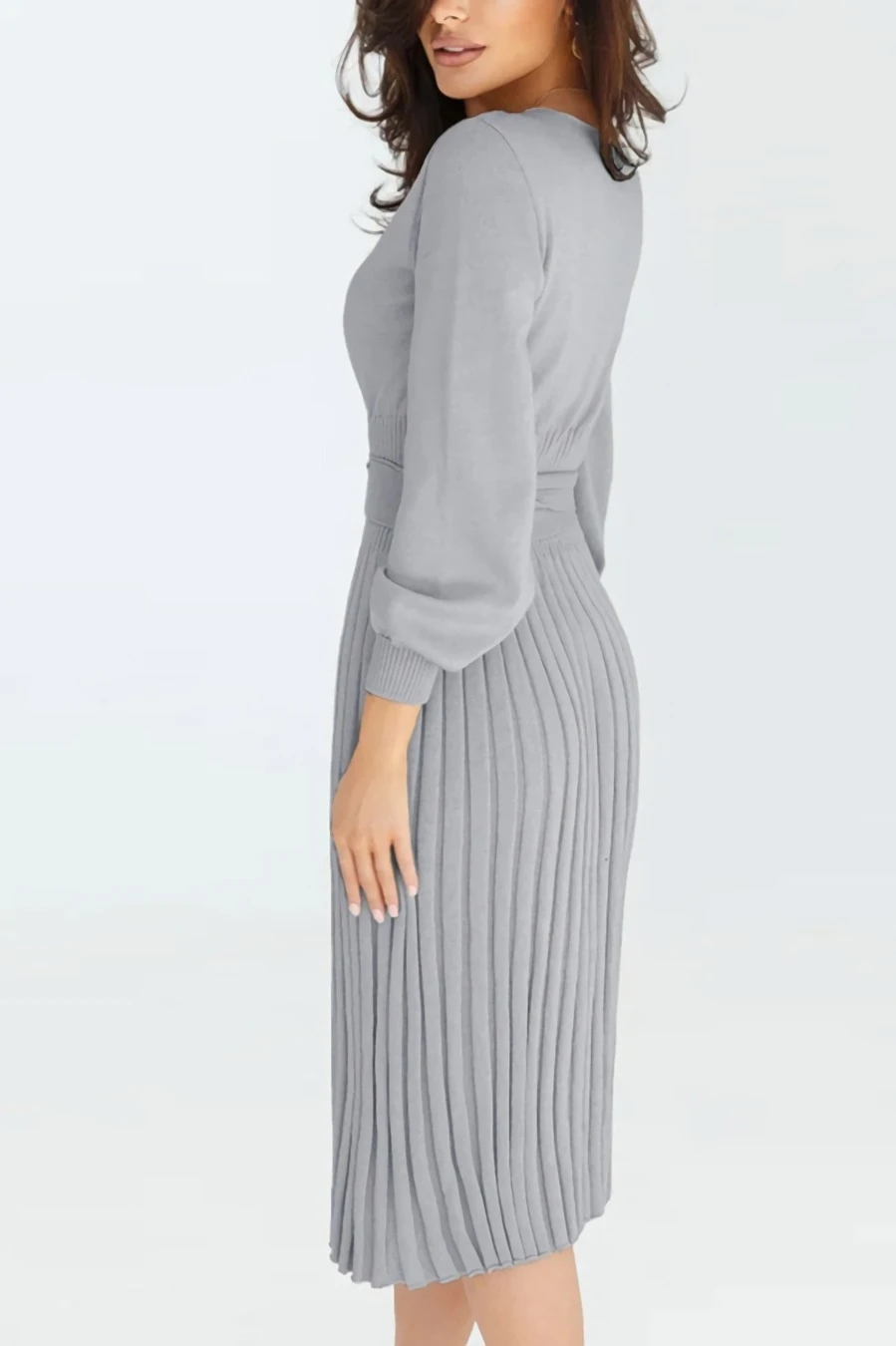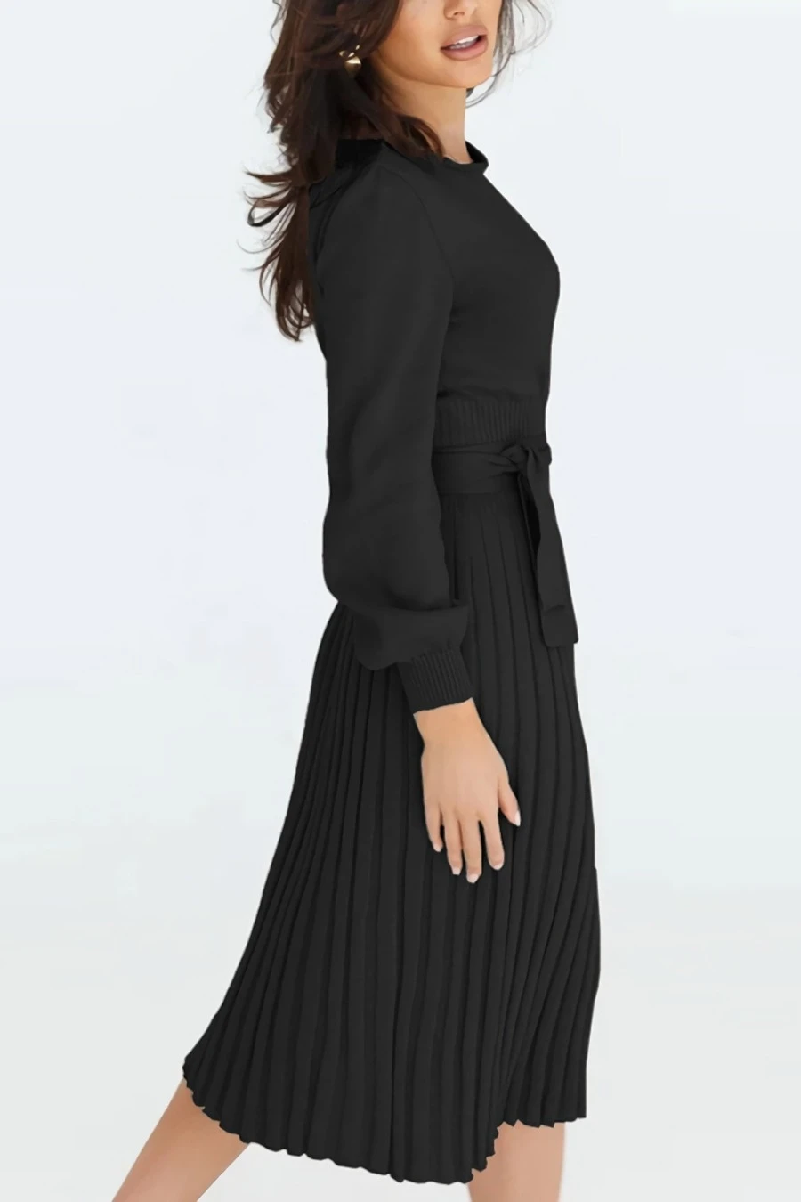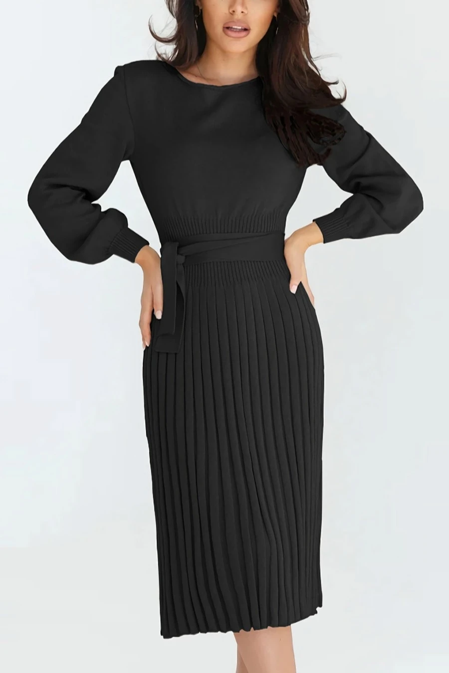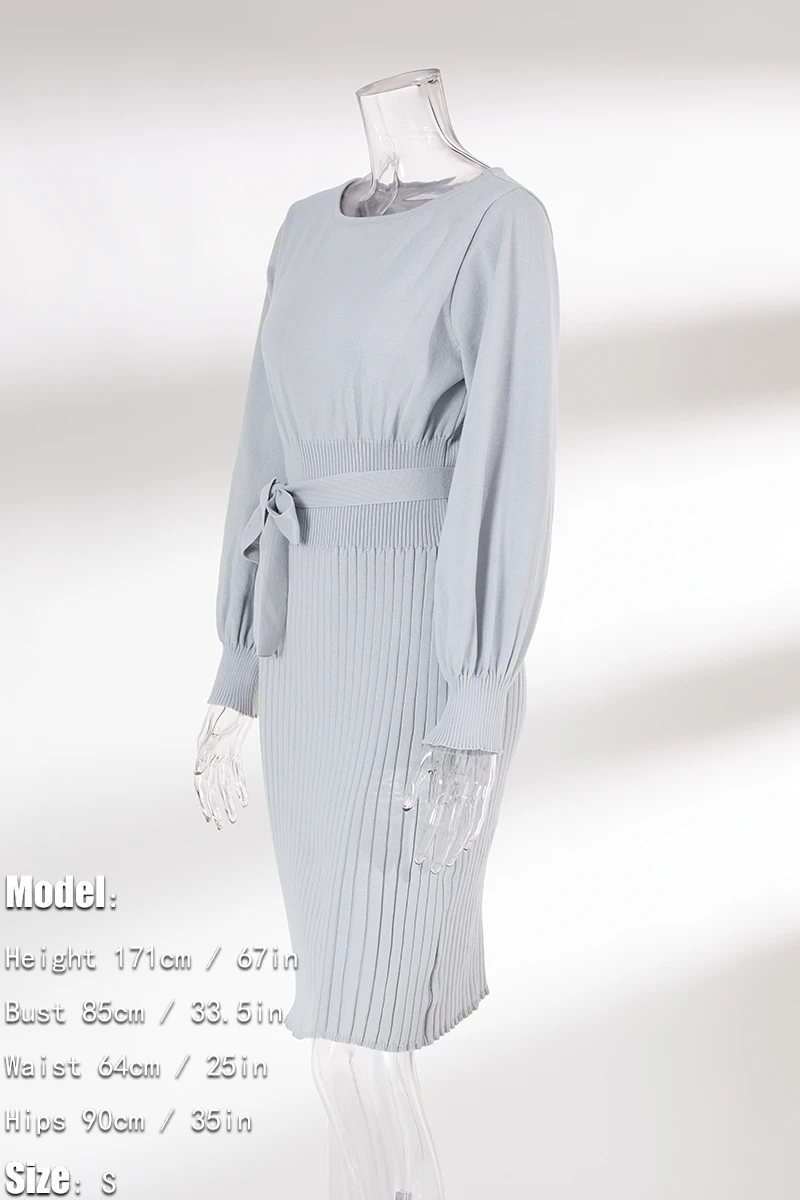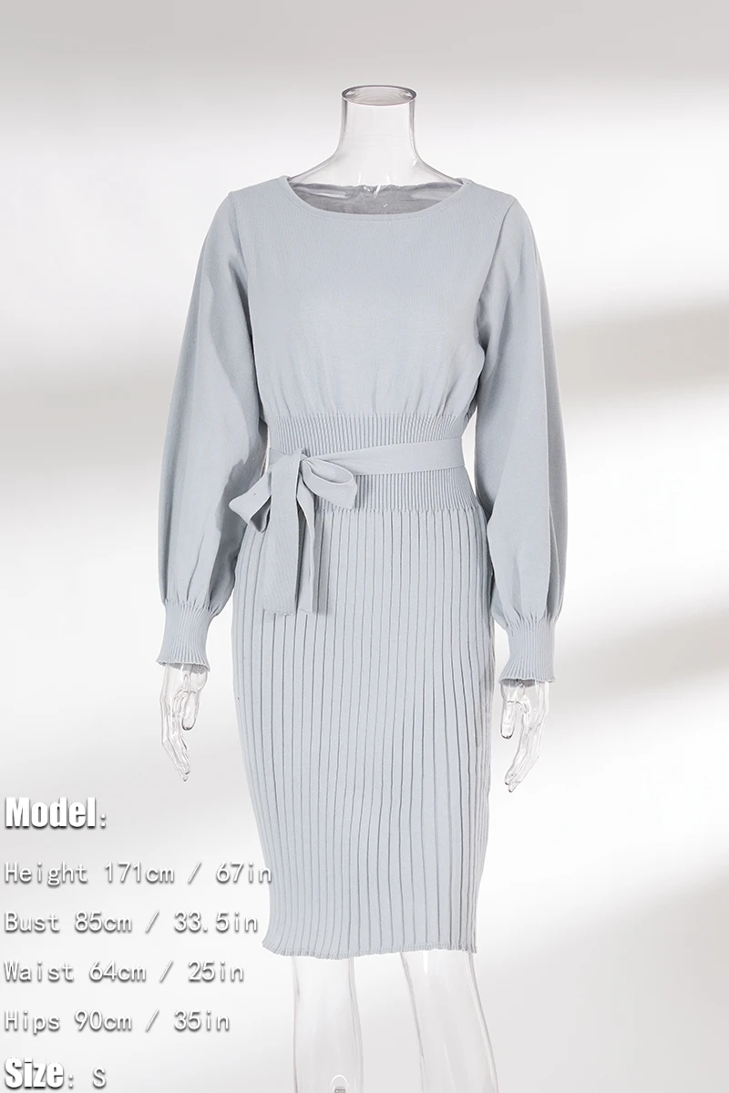 Autumn & winter new plus size 4 colors slight stretch long sleeve stylish casual knitted midi dress with belt