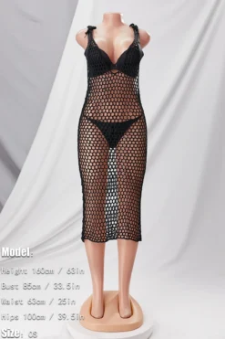 Sexy hollow woven fishnet pearl slim midi dress cover-up(only cover-up)