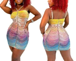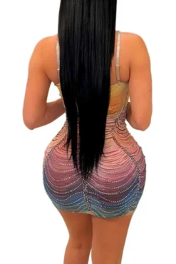 Sexy plus size slight stretch tight sling rhinestone mini dress