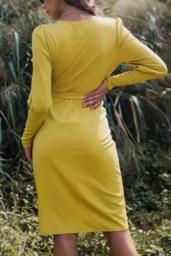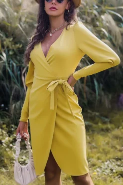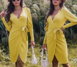 Slight stretch deep-v-neck lace up simple mini dress
