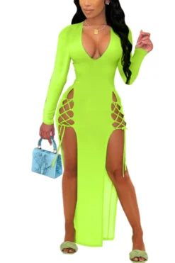 Slight stretch sequins one shoulder hollow high slit zip-up sexy maxi dress